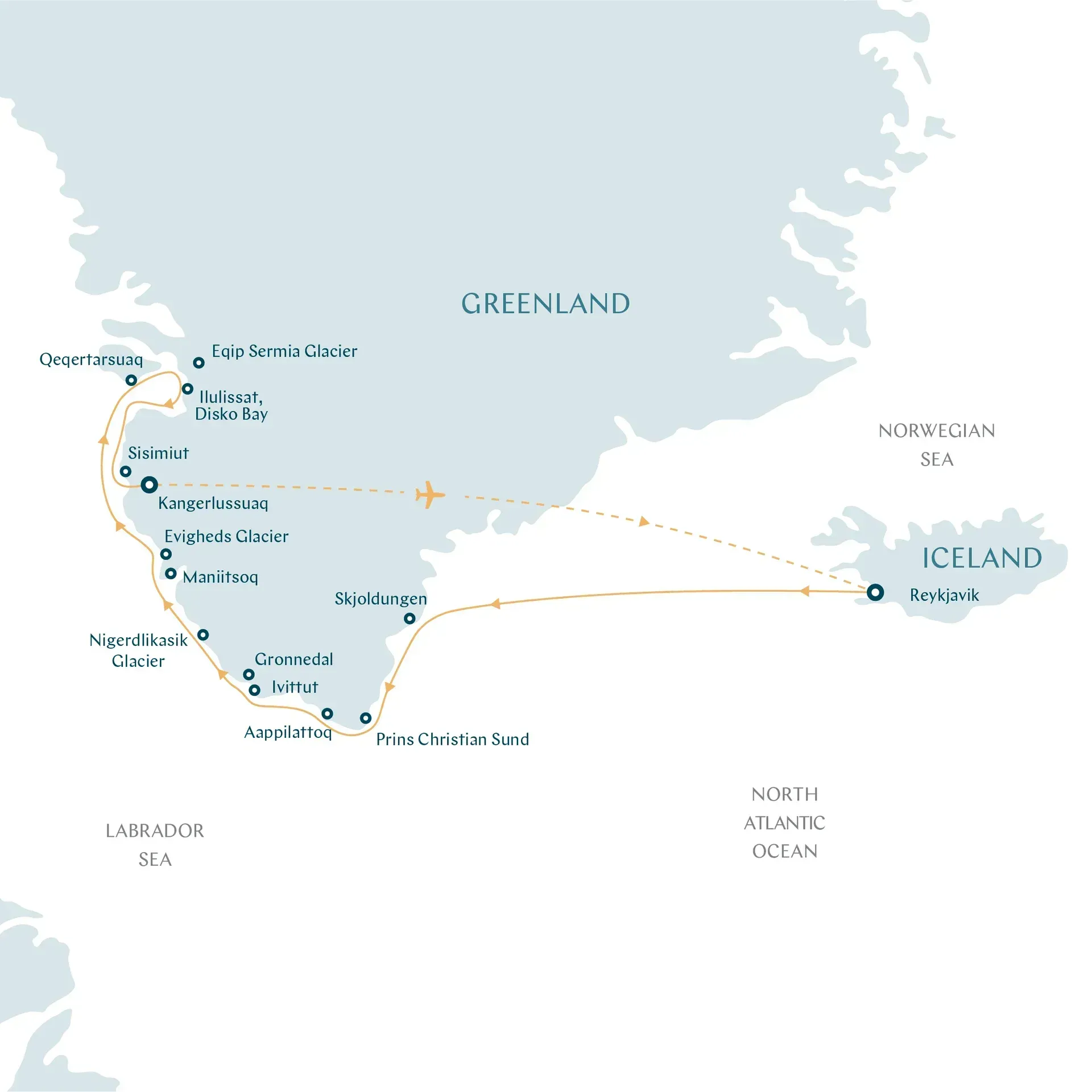 - 包機航班:航程起迄港口的包機接駁 (本航程適用港口:康格魯蘇阿克 Kangerlussuaq)。