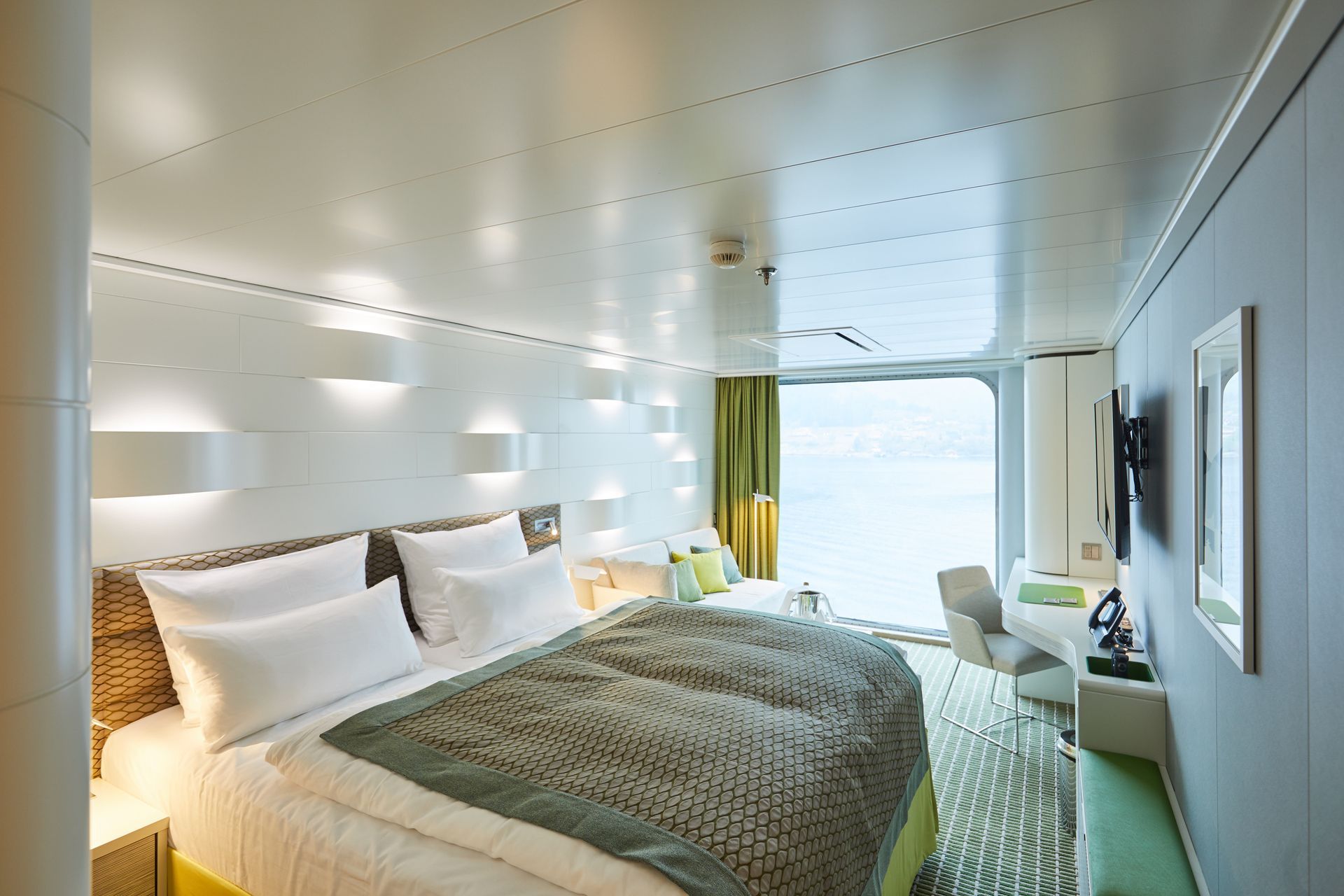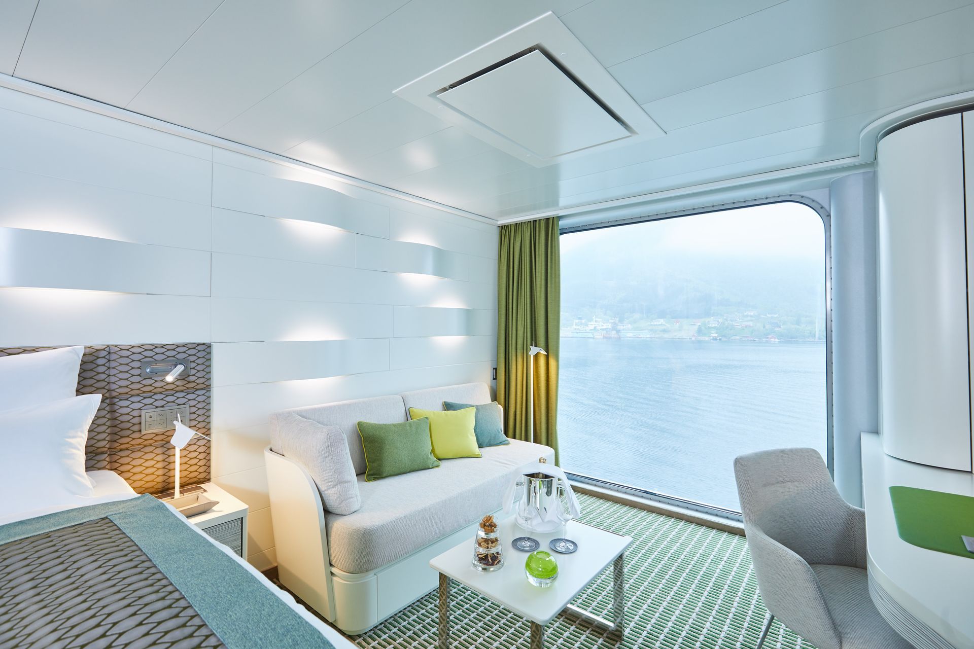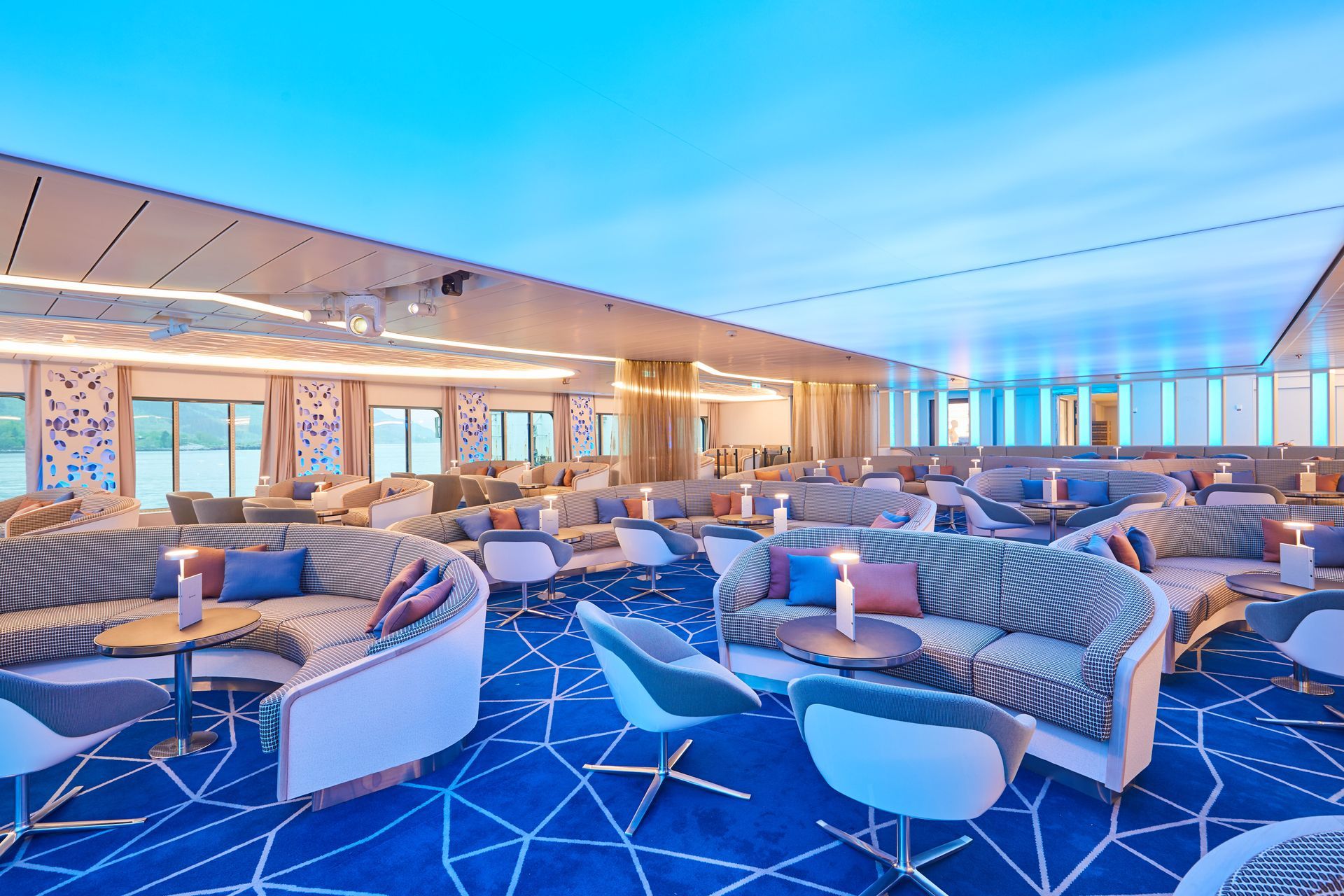船體具備 PC6 極地最高冰級,結合淺吃水技術與水下穩定器,不僅能無懼德雷克海峽的波濤,更能靈活深入亞馬遜河等窄小秘境,完美兼顧航行極限與極致平穩。空間設計延續系列靈魂,內部色調取材自大地、冰川與海洋的純粹意象。透過大量玻璃材質的通透運用,將窗外的壯麗地景無縫引入室內,成就一場在語言、空間與地理邊界上皆自在無束的深度感官之旅。