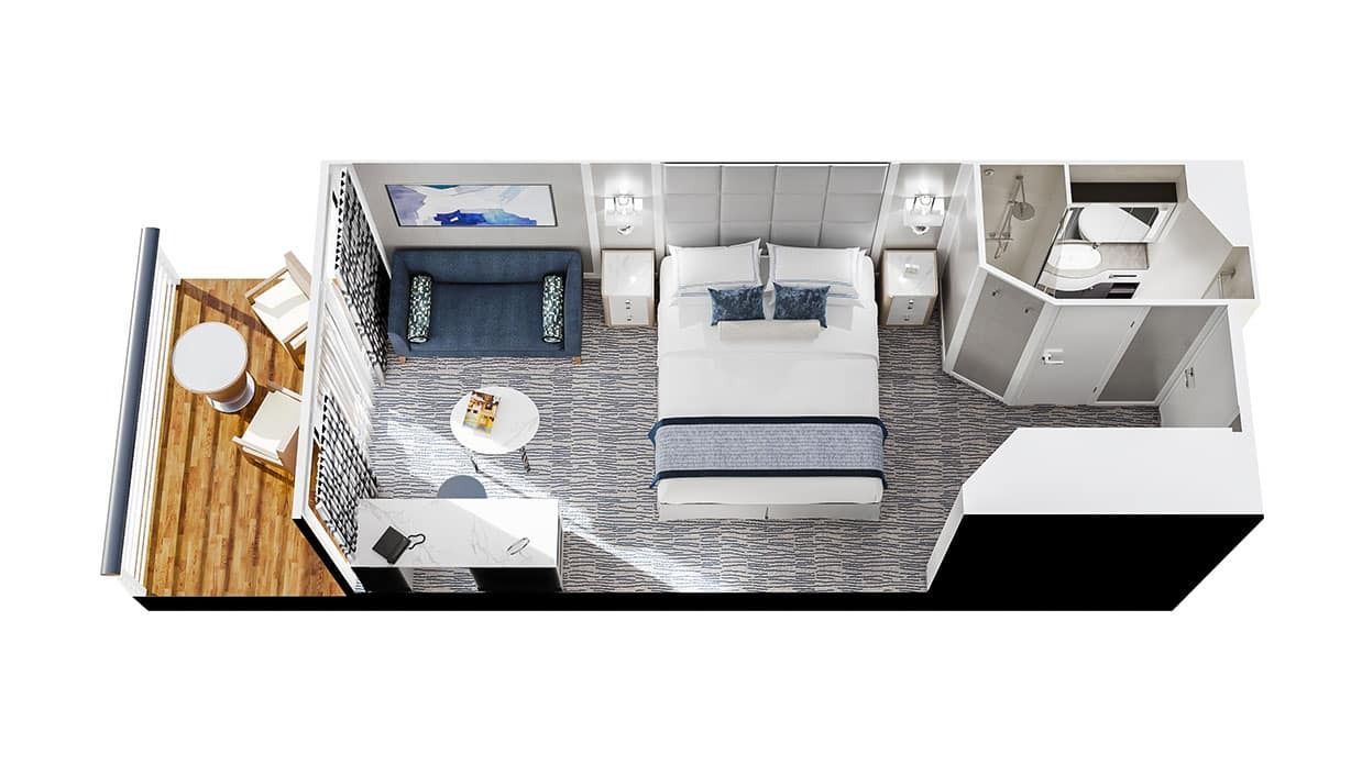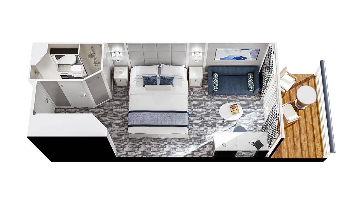 全面翻新的住宿空間,以現代設計詮釋優雅品味。公共區域採海天柔色,融合精緻家具與燈飾細節,展現品牌獨具的風格與極致舒適。船上設有四間開放式餐廳、Aquamar 水療中心、酒吧、娛樂場及 335 間客房,其中近七成為私人露台房,盡顯海上生活的悠然愜意。
