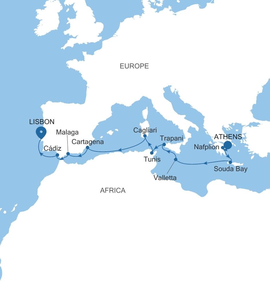 希臘, 馬爾他, 義大利, 西班牙, 突尼西亞, 葡萄牙